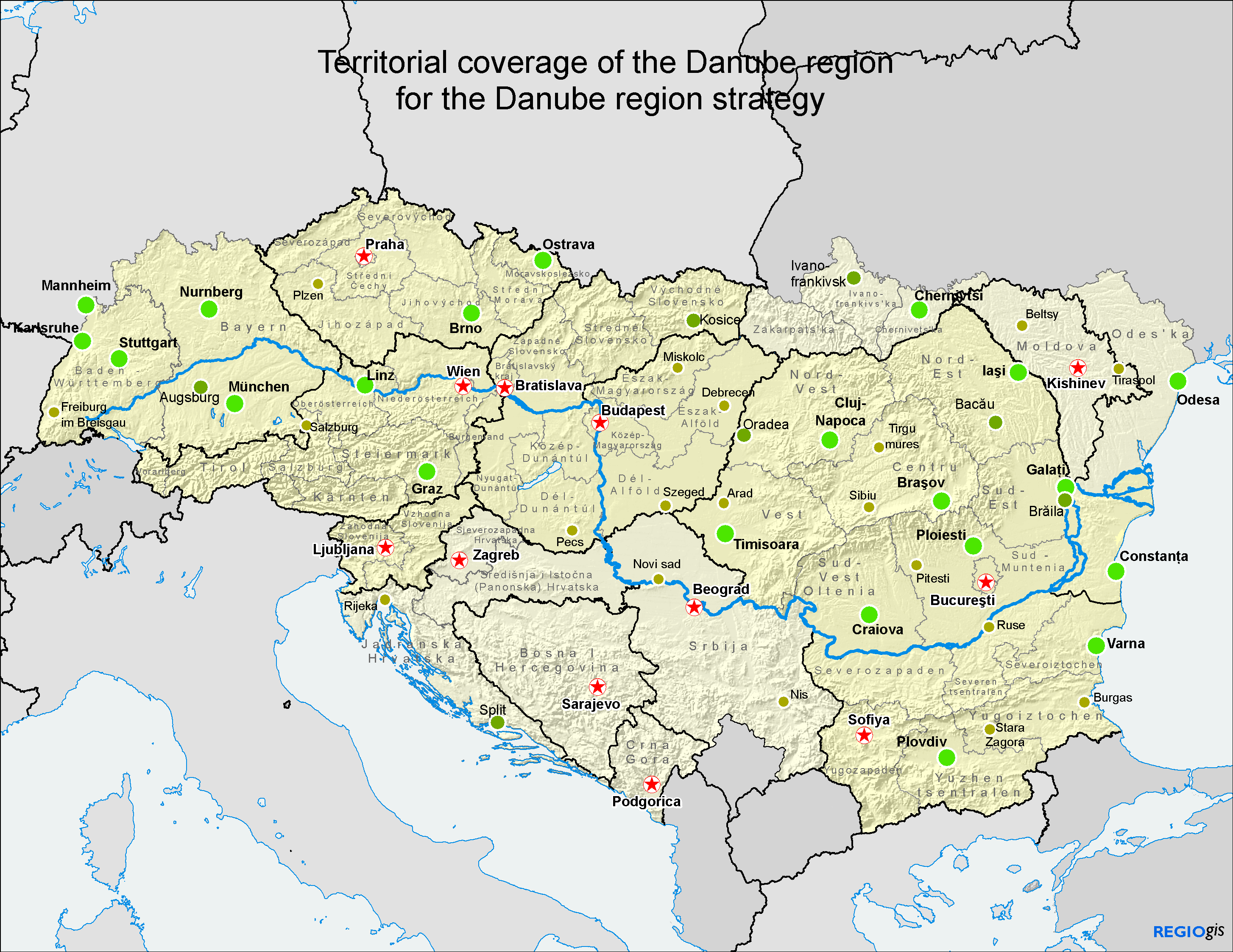 A részt vevő országok, azaz amelyekre jelenleg a dunai együttműködési folyamat kiterjed (köztük nyolc uniós tagállam): Németország (különösen Baden-Württemberg és Bajorország), Ausztria, Magyarország, a Cseh Köztársaság, Szlovákia, Szlovénia, Bulgária, Románia, Horvátország, Szerbia, Bosznia és Hercegovina, Montenegró, Moldova és Ukrajna.