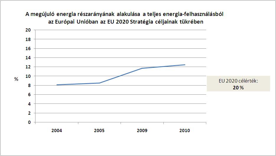 Az üvegházhatást kiváltó gázok terén Magyarország már 2005-ben is kis híján megfelelt az uniós céloknak, azóta pedig ezen a területen további csökkenés mutatkozott. A megújuló energiaforrások felhasználása 5 év alatt gyakorlatilag megkétszereződött; 2010-ben nem sokkal 10 százalék alatt volt. Magyarország azt vállalta, hogy 2020-ig energiafelhasználásának 13 százalékát fedezi megújuló energiaforrásokból. A 2020-ra a 2005-ös szinthez képest 20 százalékkal csökkentendő úgynevezett elsődleges energiafelhasználás területén az Eurostat rámutat, hogy ennek csökkenése sokkal inkább tudható be a gazdasági tevékenységnek, a válság miatt bekövetkezett visszaesésének, mint a hatékonyság növelésének. Magyarország amúgy 2010-ben mintegy 5 százalékkal használt fel kevesebb energiát, mint 5 évvel korábban.