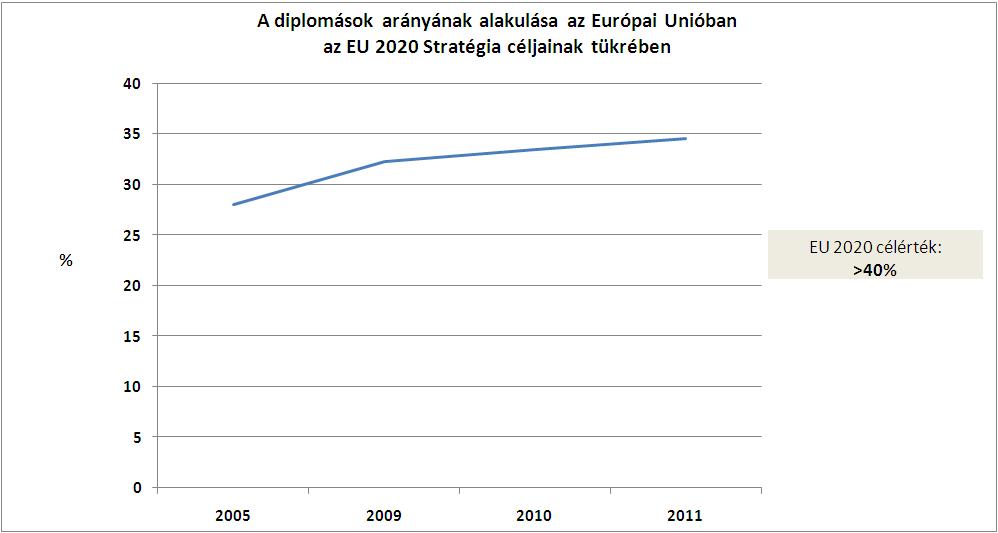 Az oktatásban Magyarország vállalta a 10 százalékos cél teljesítését az iskolát elhagyók arányának csökkentésében, a hivatalos adatok szerint ez az érték most 11 százalék körül van. A diplomások számának növelését illetően Magyarország azt vállalta, hogy 2020-ra az érintett népesség 30,3 százaléka szerez felsőfokú végzettséget, ami a most közzétett adatok szerint nagyjából 28 százalék.