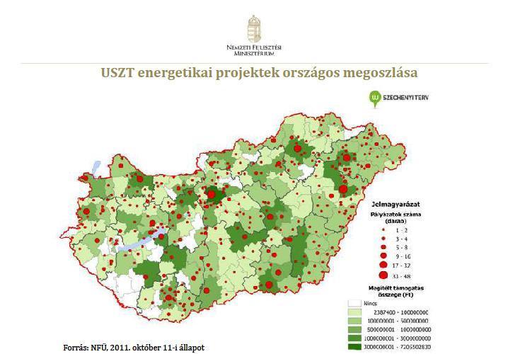 USZT projektek országos megoszlása – forrás: http://www.nfu.hu/content/8467