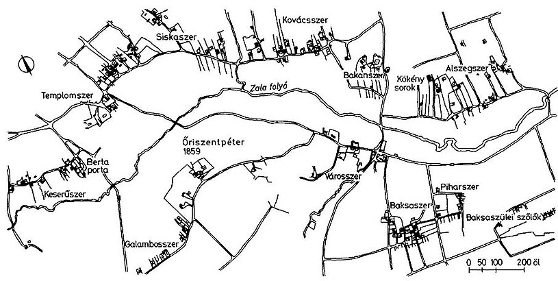 forrás: A magyar nyelvterület településformái - átmeneti formák a csoportos települések és a szórványtelepülések között. In. Magyar Néprajz IV. p. 74.