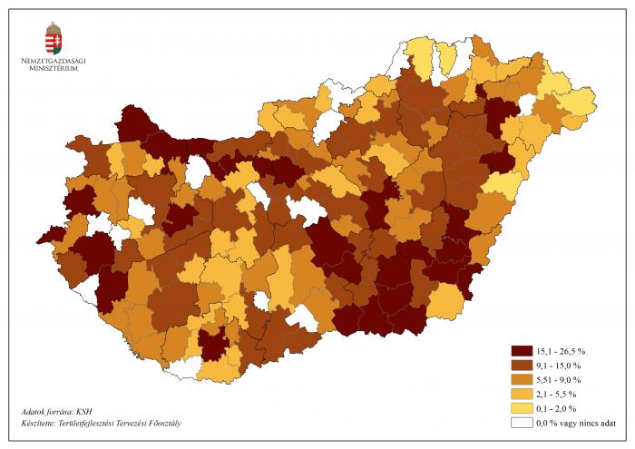 Bölcsődébe beíratott 0-2 éves gyermekek aránya, 2014